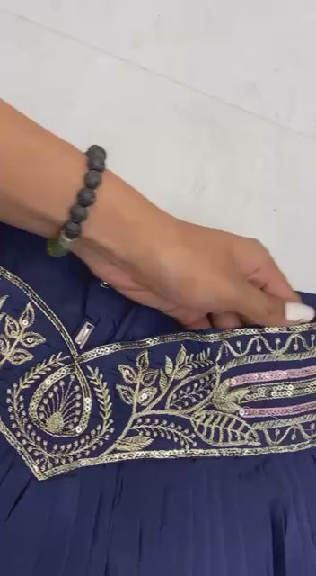 Elevate your ethnic fusion wardrobe with this stunning 3-piece Indo-Western outfit, perfect for festive occasions and parties. The set features a stylish French crepe blouse with micro lining, paired with a draped skirt that showcases beautiful sequence embroidery on the waist belt. Completing the ensemble is a chic koti (jacket), also made from French crepe and embellished with matching sequence embroidery. Designed in free size and fully stitched, this outfit is both glamorous and comfortable, ideal for modern celebrations.